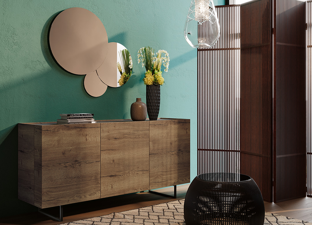 Madia bifacciale disponibile in due misure con ante spessore 22 mm e apertura facilitata a 180°.