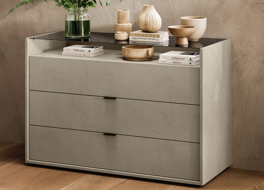 Classe e pulizia sono la sintesi perfetta del gruppo Diana. Comò, comodini e settimini in varie dimensioni per completare la camera da letto.